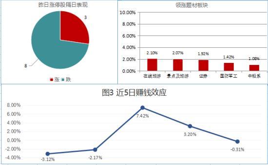 上一個交易日的漲停股隔日漲跌幅表現比為3:8,跌多于漲,目前短線追蹤環境較差;