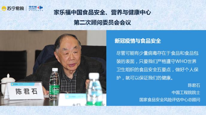 會議現場,顧問委員會主席、家樂福中國COO張其喆介紹,2020年新冠疫情給零售行業帶來了挑戰也帶來了機遇。疫情期間,家樂福承擔了民生流通主渠道的企業責任,率先做出了“穩物價、保供應、不打烊”的承諾,確保老百姓(行情603883,診股)的“菜籃子”、“米袋子”。后疫情時代,消費者更加關注食品安全、營養健康。作為零售企業蘇寧家樂福始終把保障運營合規,提升產品品質,贏得消費者信任,建立質量和食品安全文化作為工作重心,通過出臺食品安全紅線政策、審核和檢測嚴把關、管理體系升級、消費者教育等多種舉措,切實構筑食品安全防線。消費者可以直觀感受的是,家樂福門店的健康指導貨架、產品科普指南、線上營養直播、小福實驗室等等,內容涵蓋食品安全辟謠、消費者食品安全常識、減鹽、減糖、減油、合理膳食、蛋白質提高免疫力、全谷物、減少食物浪費等。